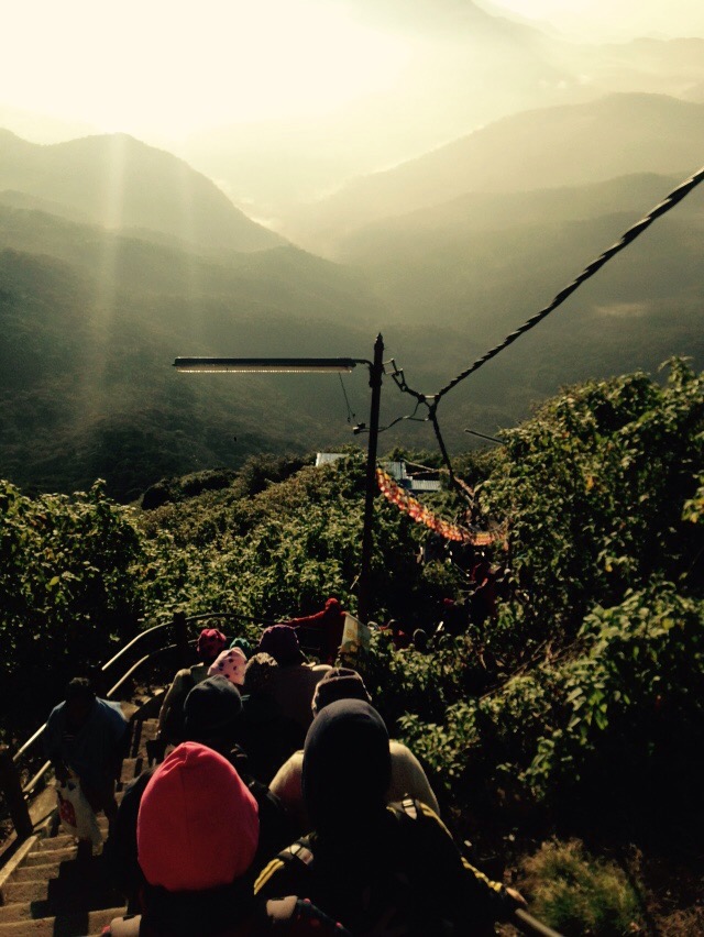 The steps started alright but after about 20 mins they became SO steep. Like so steep it was an effort to lift your legs up. We just ploughed through the first hour and i was just knackered, my legs were turning to jelly and i was nearly falling everywhere. We took a good 8 breaks because we just couldnt go on, not kidding this mountain was huge. 2025 feet! Attached pictures from the bottom when we went back. So we stopped about 30 minutes from the top for a final break and had a cup of tea.. I was just dead, we had been walking up steps for 3 hours 😫. But then we got to the top, and there was so many people… Theres a small temple at the top but the main interest is the sunrise. It was just BEAUTIFUL. honestly we stood in a really good place and you could see for miles! Plus our mountain was the biggest in a range of them so there were other mountains that were slowly lit up with clouds around them. Watching the sunrise was just the best thing ever – its definitely the best thing I’ve done on this trip.