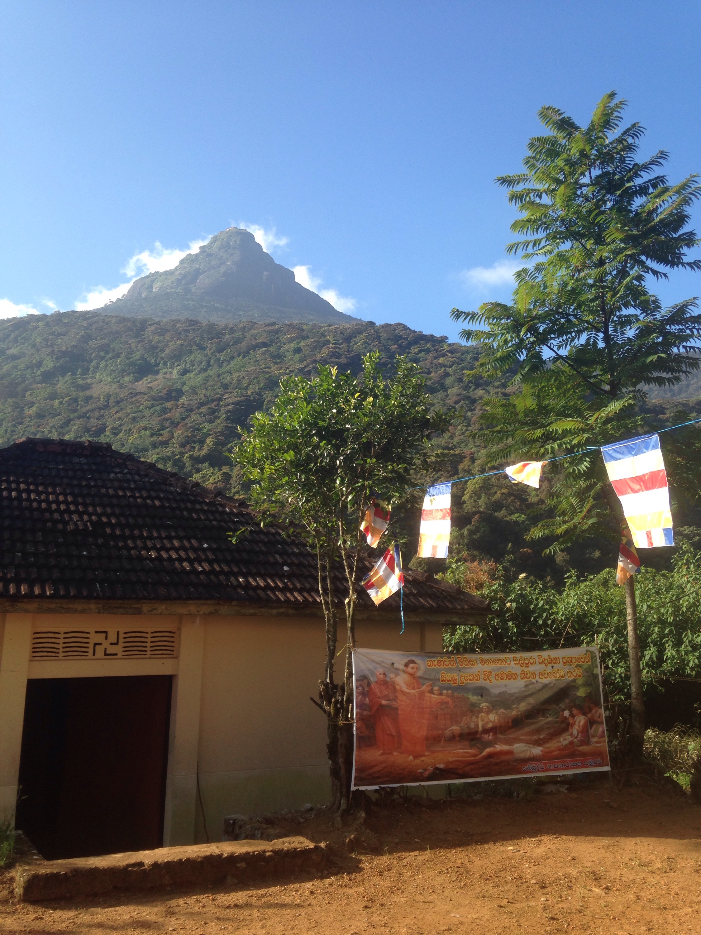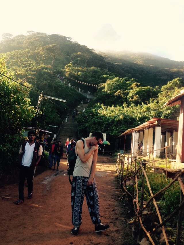 We got a driver and a car and headed for Adams peak – its a huge mountain with a temple on the top. It took about 6 hours to get there (including stopping for a cup of tea obviously). The ride was really nice even though i slept for the first half! Once we got to the hill country, all the roads were so bendy and uphill! We went through a town called Hatton as well haha! There were massive lorries as well which was pretty dodgy. There was also loads of wild boar wandering about because it was night time, they are so ugly haha.. Also a huge lake and LOADS of tea fields. The climate was so different, it was cold! Like jacket cold! So weird but it was very comfortable. We stopped in a town and got take away noodle things..we finally made it to the hotel, which is right at the bottom of the mountain! We had to trek up loads of steps to our room and i was knackered haha didnt know how i was going to do a mountain!